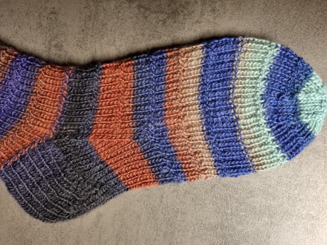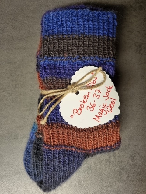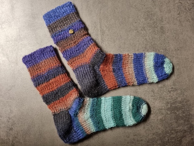 Das Muster Broken Rips ist ein gleichmäßiges Muster mit dünnen Rippen, die durch regelmäßige linke Maschen durchbrochen werden. Die Socken sind nicht zu dick, sodass man sie prima in normalen Halbschuhen tragen kann. Aber auch schön wärmend, dass sie sich für zuhause auf dem Sofa oder auch als Bettsocken eignen.