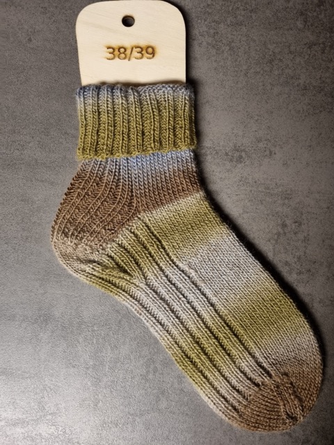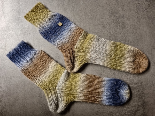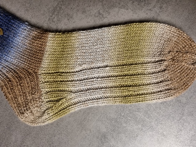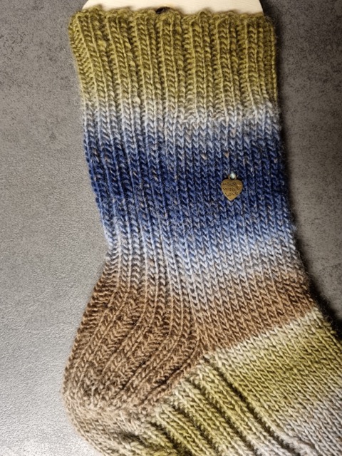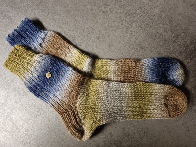 Das Muster Jule dreht alles auf den Kopf und führt das Rippenmuster an der Rückseite der Ferse unter dem Fuß entlang. Die Socken sind schön dick und warm, sind daher prima für zuhause auf dem Sofa oder als Bettsocken geeignet. Vielleicht passt man damit noch in große Stiefel rein, aber beim normalen Schuh dürfte es eng werden.
